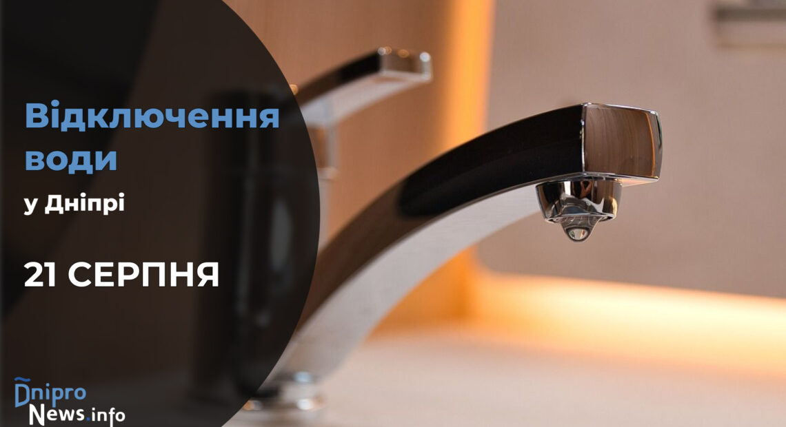 Сьогодні, 21 серпня, деякі вулиці Дніпра залишились без води. Про це повідомили в пресслужбі КП “Дніпроводоканал”.