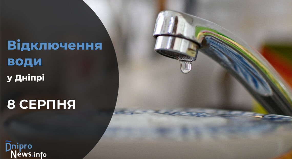 Сьогодні, 8 серпня, деякі вулиці Дніпра залишились без води. Про це повідомили в пресслужбі КП “Дніпроводоканал”.