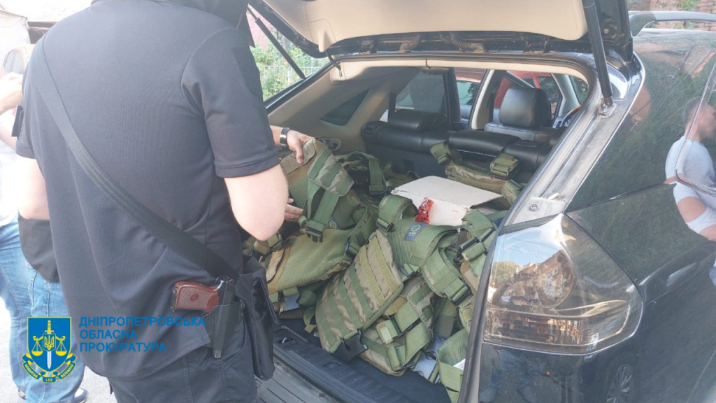 Під час проведення обшуків за місцем мешкання та в автомобілі підозрюваного вилучено бронежилети, документацію, що підтверджує ввезення в Україну цього спорядження для потреб ЗСУ, мобільні телефони, комп’ютерну техніку та грошові кошти.