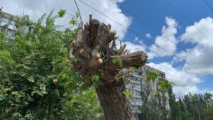 Роботи виконуватиме комунальне підприємство «Міськзеленбуд», яке має провести видалення аварійних дерев поблизу будинку №14.