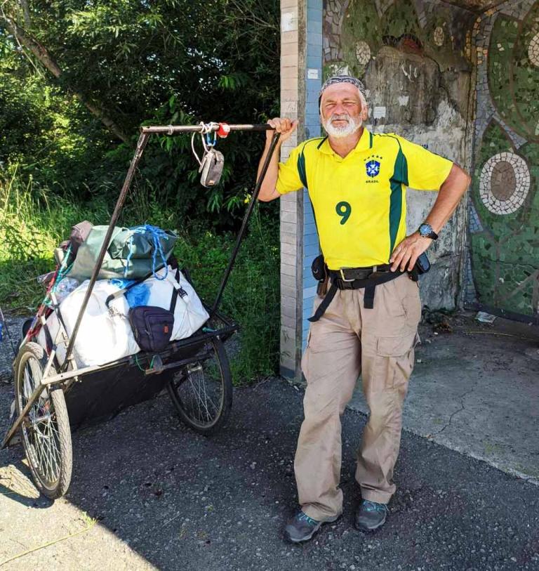 Мандрував Сергій не з рюкзаком, а з возиком, куди складав усе необхідне – воду, спальники, одяг та інші предмети першої необхідності.