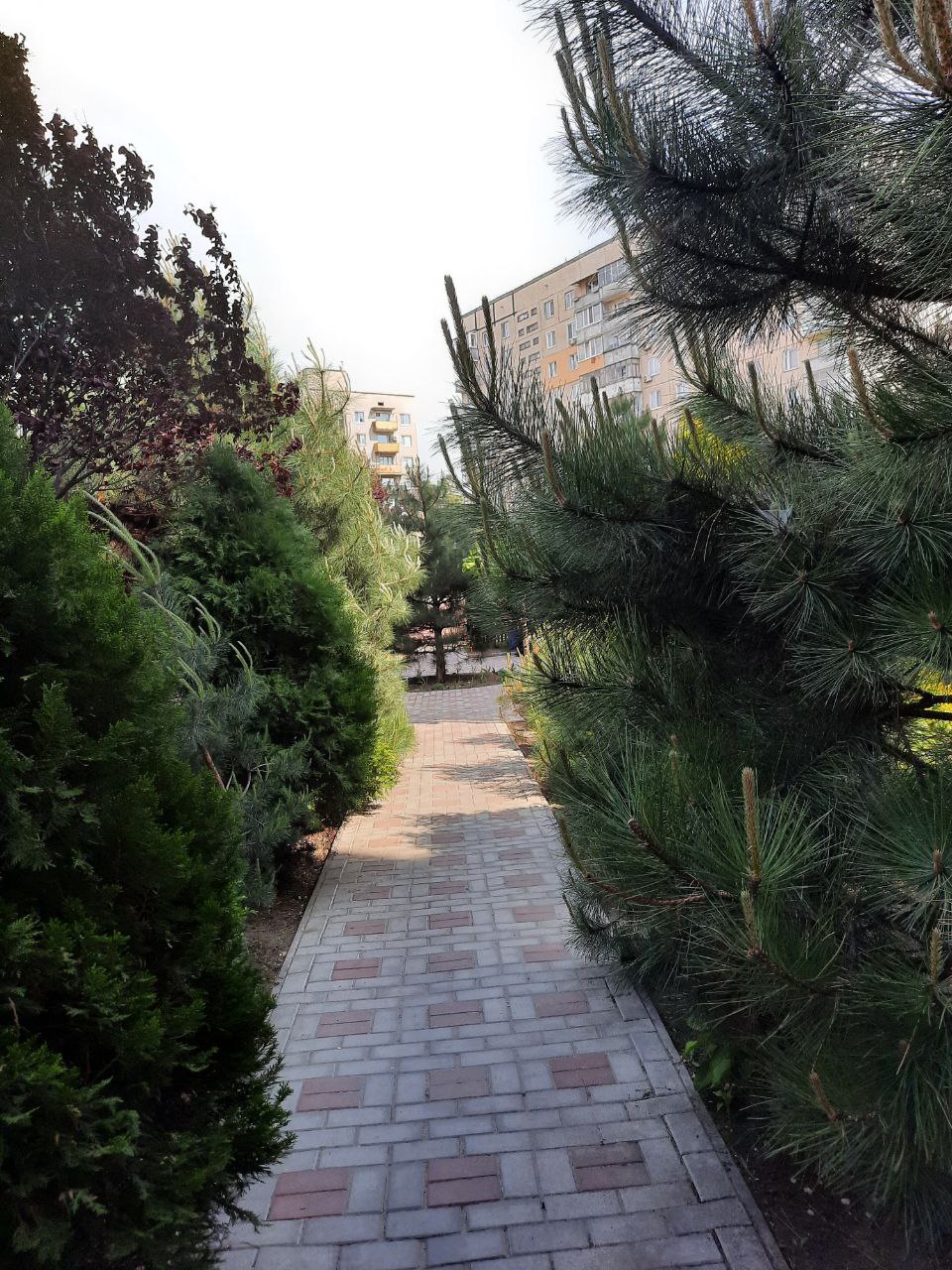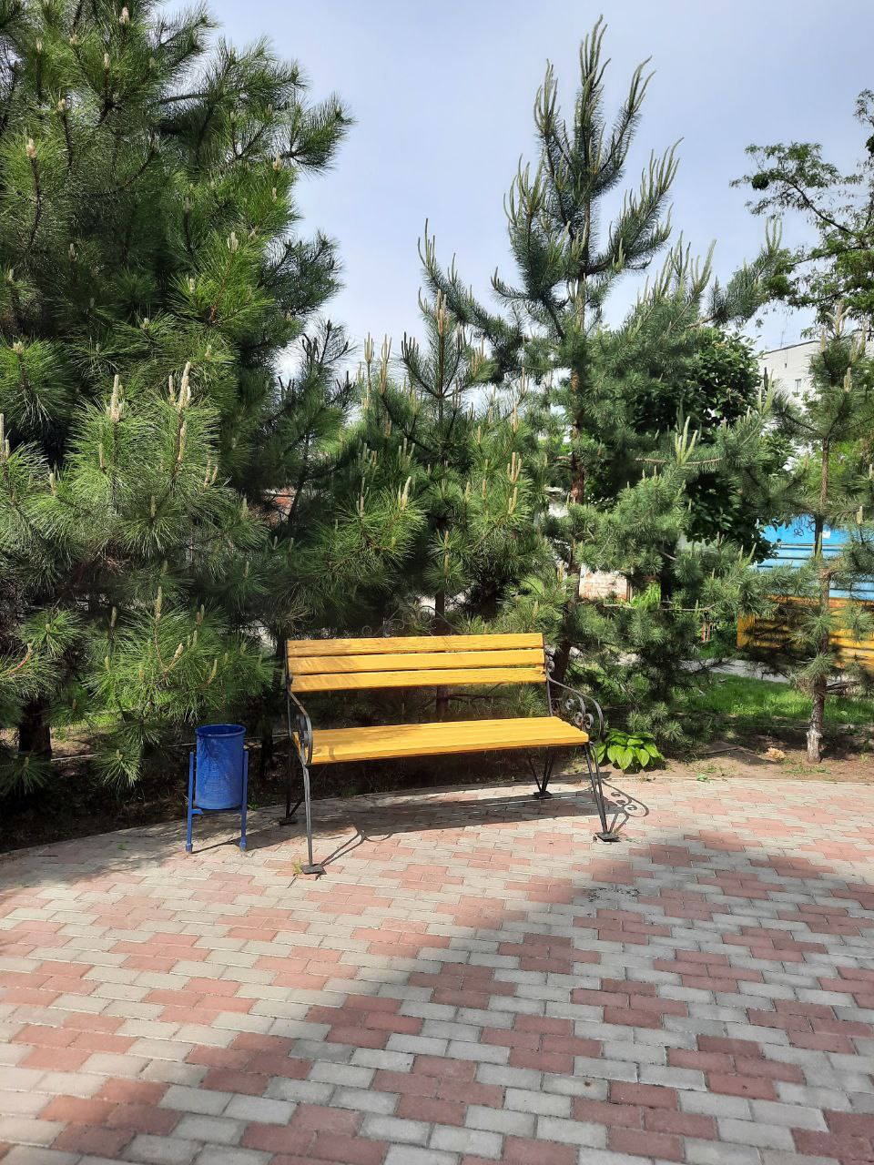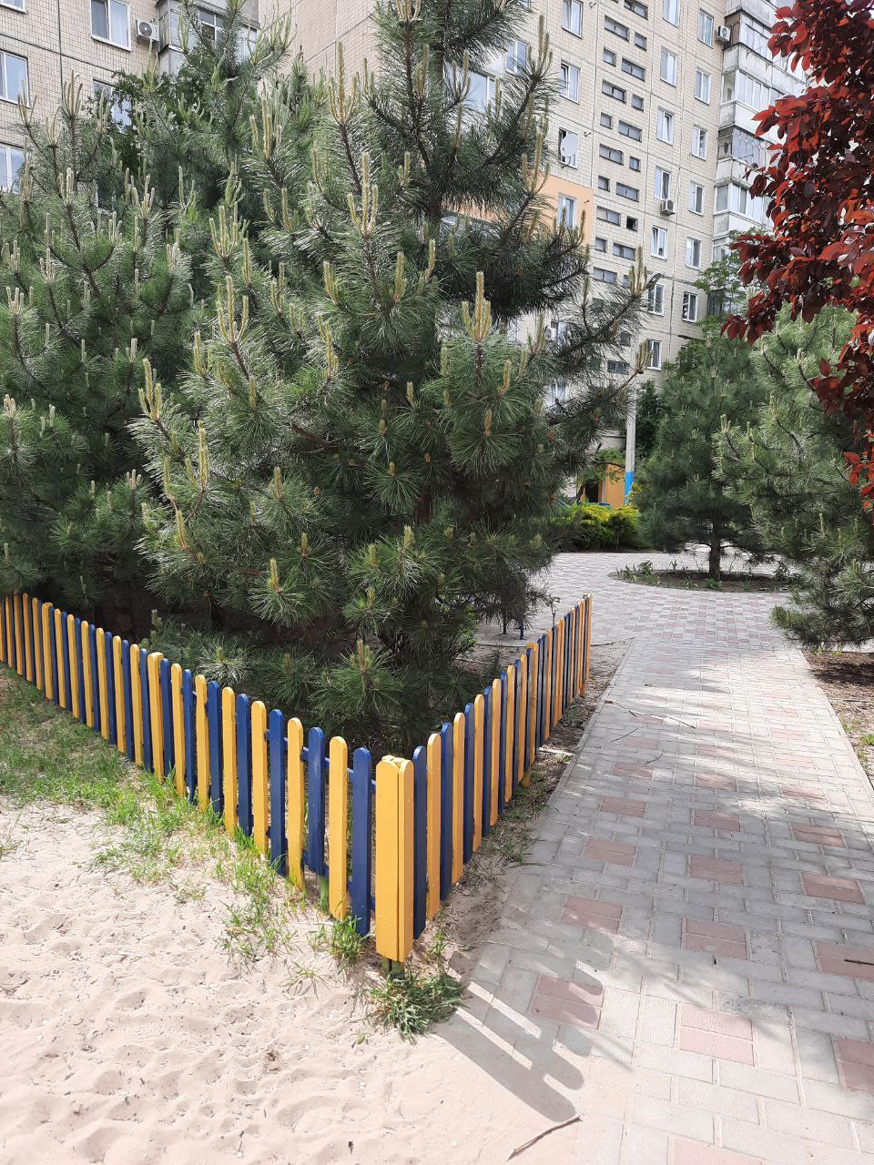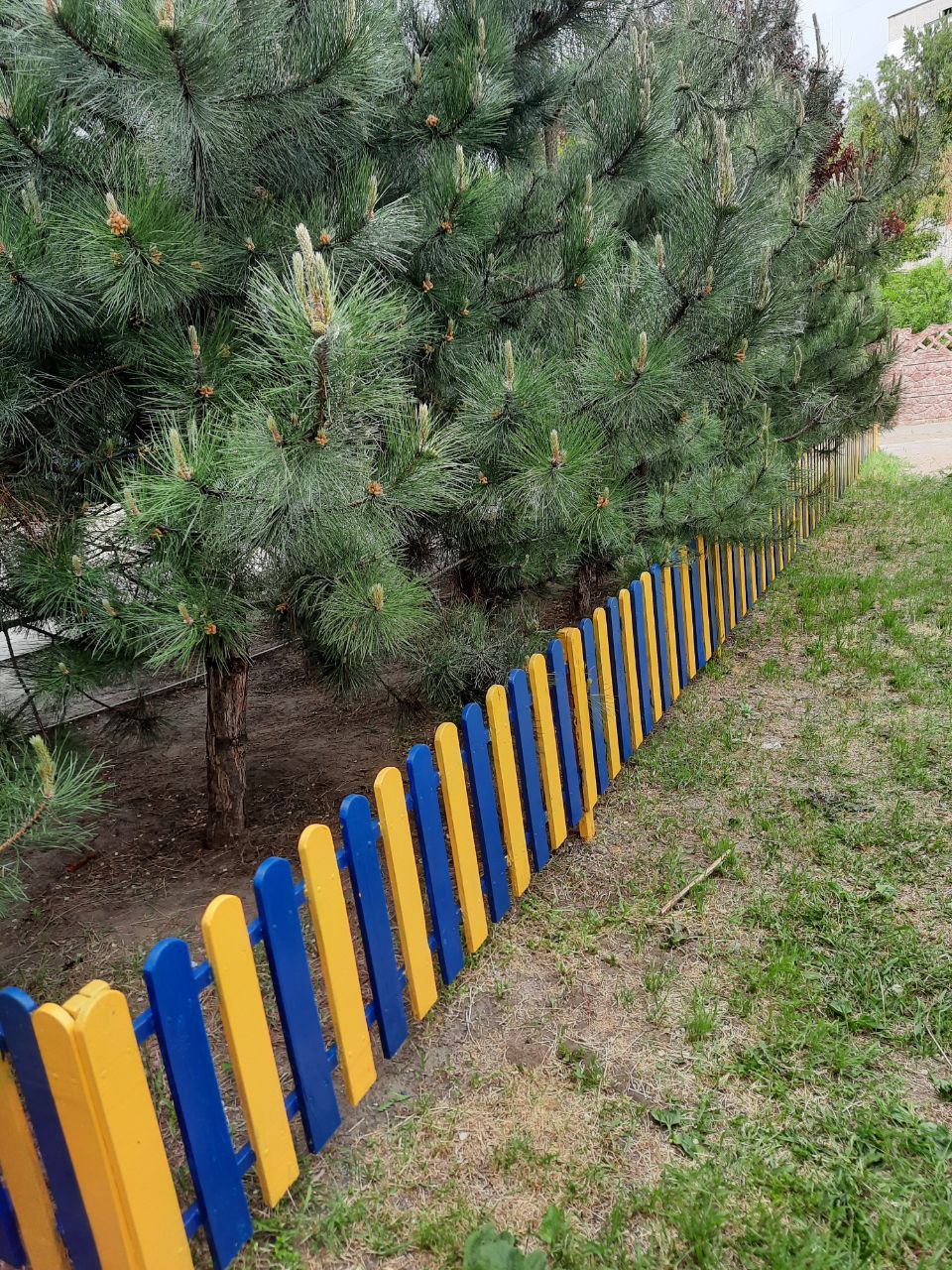 У Новомосковську з’явився невеликий сквер поблизу будинків, де мешкають з півсотні переселенців. Там проклали доріжки, посадили дерева – листяні та ялинки. А також встановили лавочки, урни, облаштували клумби, висадили квіти, пофарбували паркани – у патріотичні синьо-жовті кольори.