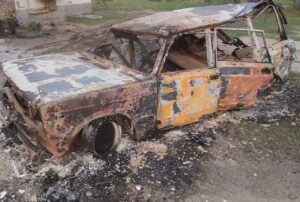 Пошкоджений соціальний заклад. Одне авто знищене, інше – понівечене.