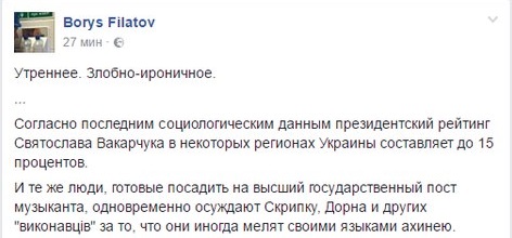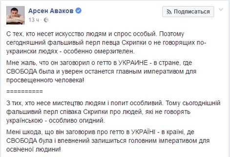 Даже Министр внутренних дел Украины Арсен Аваков прокомментировал высказывание музыканта.