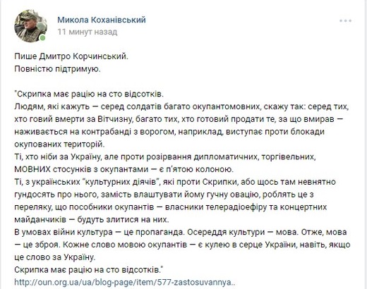 В одном из интервью украинский певец Олег Скрипка, фронтмен группы Вопли Видоплясова, крайне негативно отзывался о людях, которые не умеют разговаривать на украинском языке. Это, в свою очередь, вызвало бурю комментариев в социальных сетях.